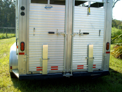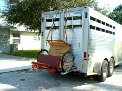 Our aluminum buggy rack and bucket holder free up the inside of your trailer to make room for more horses or gear.
